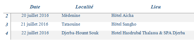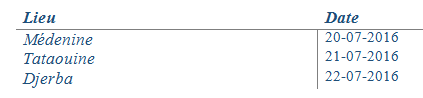 Après le premier atelier les 30 et 31 mai et le 2 juin 2016, qui avait pour objectifs de renforcer les capacités des acteurs locaux en matière de participation citoyenne et d’élaborer un diagnostic partagé de la participation à Médenine, Tataouine et Djerba Houmt Souk, le projet Tamkeen se propose d’organiser le deuxième atelier portant sur les bonnes pratiques en approche participative et l’élaboration du plan d’action pour la mise en place d’une approche participative et inclusive à l’échelle locale, selon le calendrier suivant :