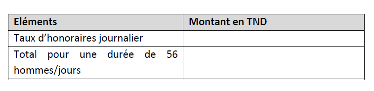 Offre financière : Elle doit être détaillée selon le tableau suivant :