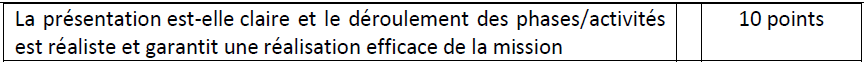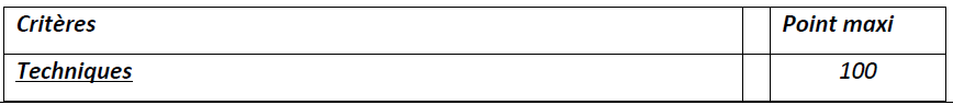 L’évaluation technique des offres portera sur les critères indiqués ci-dessous et selon le barème de notation suivant: