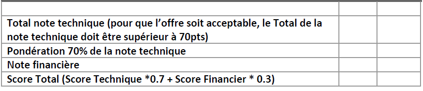 Grille d’évaluation de l’offre technique :