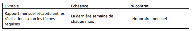 Il est à noter que Le/La consultant/e junior soumettra en format numérique le rapport mensuel et tout document additionnel ayant fait l’objet de son appui.