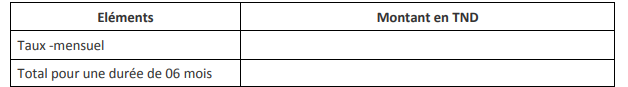 NB : Dans le cas de déplacement à l’intérieur du pays ou en dehors de la Tunisie, le/la consultant/e sera pris/e en charge par le PNUD. Le/la consultant/e ne devra pas inclure ces frais dans l’offre financière