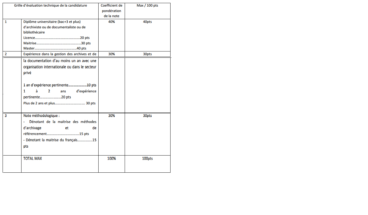 Les candidatures reçues seront évaluées par un panel de sélection selon la grille de compétences techniques définie ci-dessous, sur la base des documents envoyées.