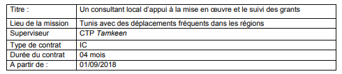l’agenda politique tunisien, le PNUD souhaite élargir l’équipe en charge de la mise en œuvre et le suivi des grants par le recrutement d’un(e) consultant(e).