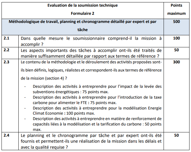 • La commission d’évaluation procèdera à l’évaluation des offres techniques (parmi les offres recevables) en suivant la méthodologie d’évaluation technique ci-après développée.