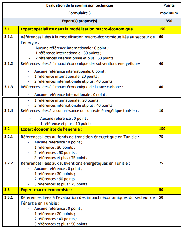– Toute offre n’ayant pas obtenu la note technique minimale requise (700 points) ne sera pas retenue pour l’évaluation financière.
