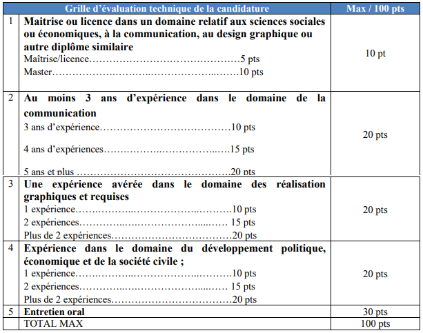 Seules les propositions financières des candidatures retenues suite à l’évaluation technique avec un minimum de 70/100 points seront examinées.