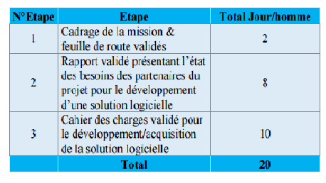 4) L’état des besoins pour l’alimentation de la base de données initiale de solution logicielle à développer/acquérir.