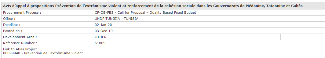 PNUD lance un appel à propositions: Prévention de l’extrémisme violent et renforcement de la cohésion pour prévenir la violence dans les Gouvernorats de Médenine, Tataouine et Gabès Retour vers les opportunités