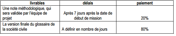 DUREE ET DEBUT DE LA MISSION : 30 jours de travail étalés sur une période maximale de deux mois. La mission débutera 21 Janvier 2016.