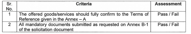 Qualification/Evaluation Criteria: The technical component of your offer will be evaluated using the PASS or FAIL criteria as per below