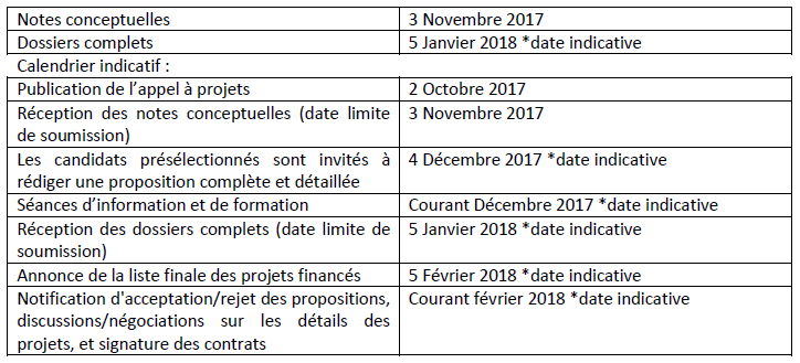Des séances d’information et de formation seront proposées aux notes conceptuelles retenues. Les dates et lieux de ces séances seront communiqués ultérieurement aux candidats retenus.