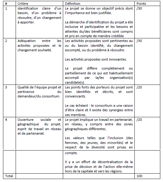 Une attention particulière sera accordée aux projets ayant une valeur ajoutée dans le domaine de la décentralisation, et bénéficiant aux jeunes et aux femmes.