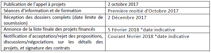 Calendrier indicatif :