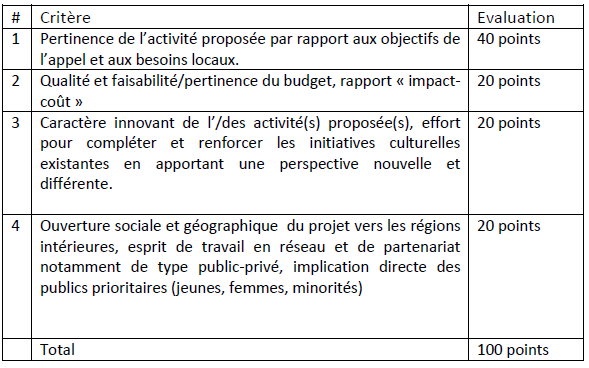 Si votre candidature est retenue, l’équipe de Tfanen – Tunisie Créative vous contactera en vue d’une réunion de travail pour discuter et éventuellement parfaire certains détails de votre dossier. La signature du contrat de subvention final sera subordonnée à un accord sur les points identifiés lors de cette réunion de travail (budget, détail des activités, etc.) Tfanen – Tunisie Créative se réserve le droit d’éventuellement octroyer une subvention au-delà ou en deca des seuils minimum et maximum présentés dans cet appel.