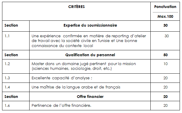 L’offre du/de candidat(e) sera examinée en suivant les critères ci-dessous: