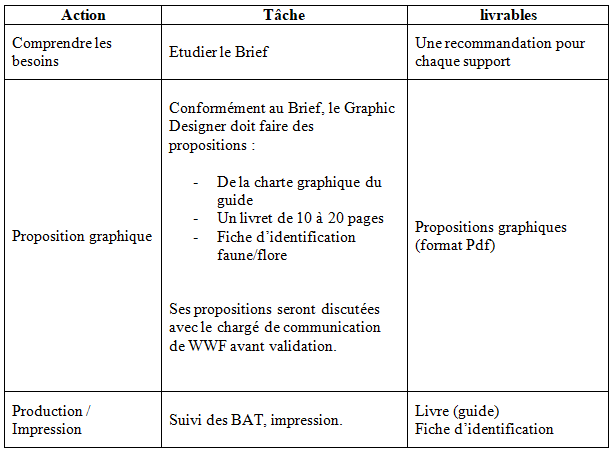 - Désigner un comité de suivi technique mixte (DGF/WWF).