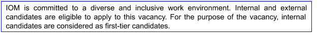 • Experience preferably in an international organization. Experience with IOM or another international organization a plus; or master’s degree in the above field is an advantage;