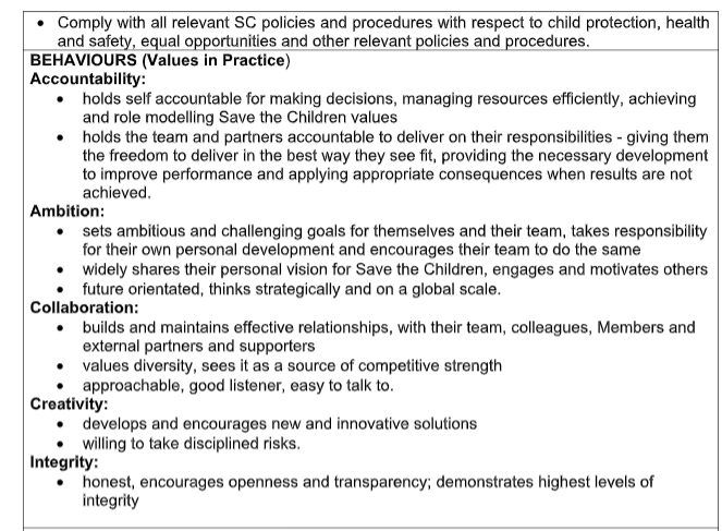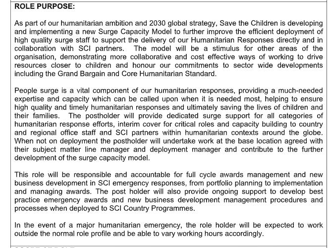 SAVE THE CHILDREN INTERNATIONAL PROGRAMS ROLE PROFILE
