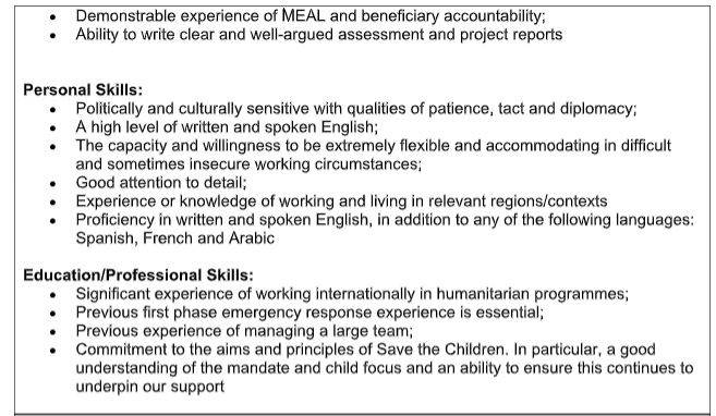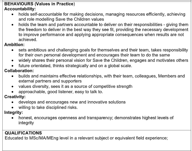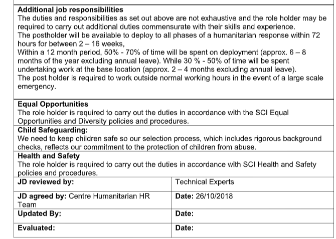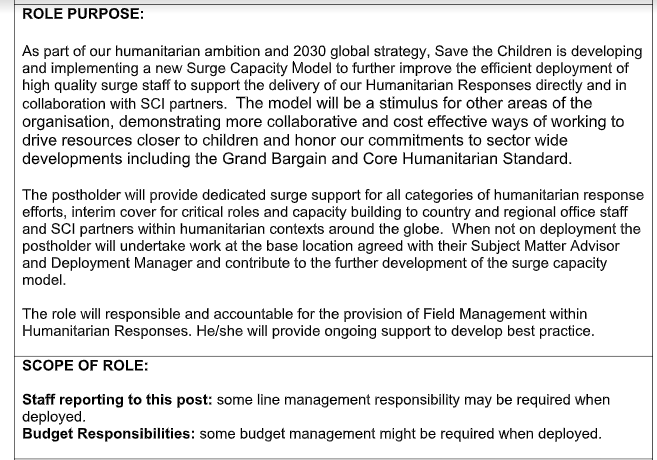 SAVE THE CHILDREN INTERNATIONAL HST ROLE PROFILE