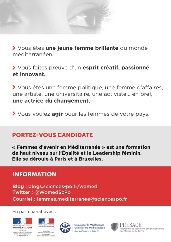 FAM (« Femmes d’avenir en Méditerranée ») est un programme unique élaboré par Sciences Po Paris, à l’attention de jeunes femmes issues de la rive sud de la Méditerranée.