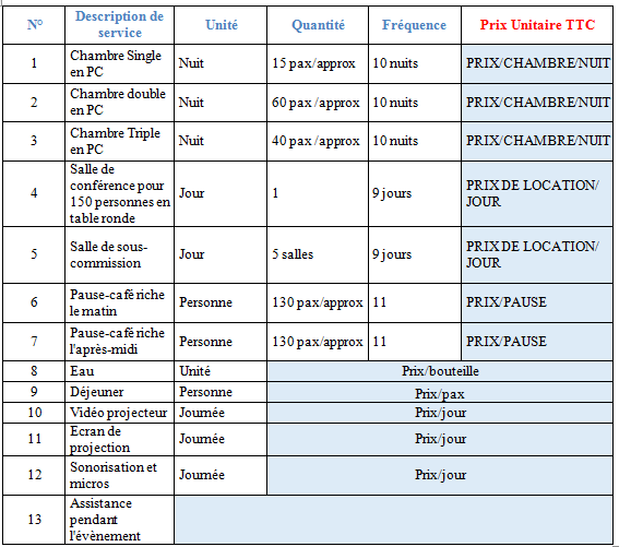 Dans le cadre du projet « The President », nous lançons un Appel d’offre pour un services d’hôtellerie de 14 au 24 Juillet 2019 :