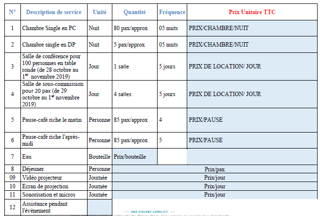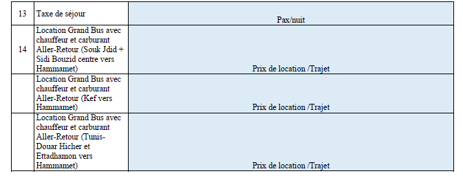 Pour plus d’information : www.sfcg.org/tunisia Dans le cadre de projet « MA3AN », nous lançons un Appel d’offres pour prestation d’un service d’hôtellerie du 28 Octobre (check in 12h :00) au 2 Novembre 2019 (check out) :