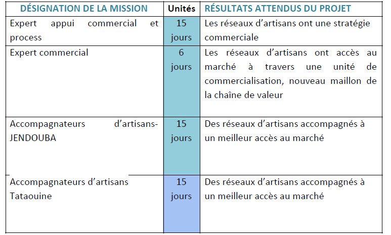Profil du candidat : La consultation est ouverte à toute personne physique ou entité morale présentant des compétences en commercialisation des produits artisanaux ainsi qu’une maîtrise de la chaîne logistique d’une unité de production. Le postulant doit avoir des collaborations antérieures avec des artisans/entreprises artisanales ainsi qu’une expérience en vente sur le marché local et/où international.
