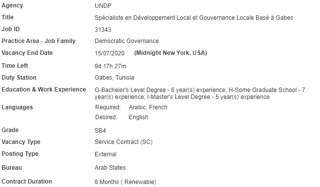 Spécialiste en Développement Local et Gouvernance Locale Basé à Gabes – PNUD Retour vers les opportunités