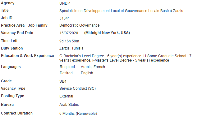 Spécialiste en Développement Local et Gouvernance Locale Basé à Zarzis – PNUD عودة إلى الفرص