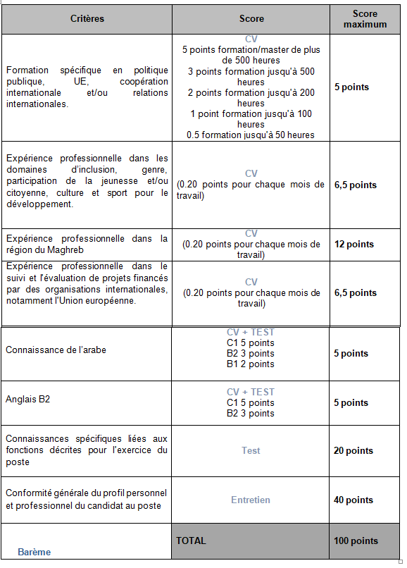 Plus précisément, le poste recherché est pour le projet « Participation et inclusion de la jeunesse tunisienne par la création, l’accès à la culture et le sport au niveau local » (élément 2 du projet EU4Youth) en TUNISIE, dans le domaine de l’administration publique et des affaires sociales.