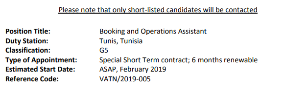 The UN agency for Migration – IOM Tunisia is looking for a Booking and Operations Assistant