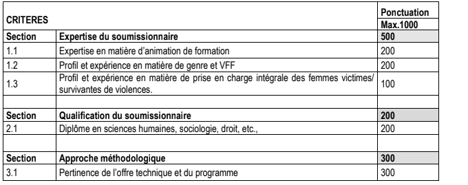 L’offre de l’expert(e)sera examinée en suivant les critères ci-dessous: