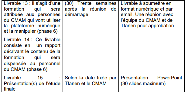 Une formation à l’usage de la plateforme numérique au profit du personnel désigné par le CMAM sera dispensée par les consultants-experts.