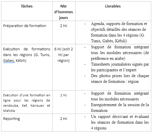 Cette mission se déroulera essentiellement entre le 20/09/2021 et 20/10/2021. La Charge de travail globale est de maximum 12 hommes jours. L’expert devra garantir sa disponibilité pour la période de la mission. Toute la mission devra être réalisée par l’expert lui-même et il ne pourra sous-traiter aucune activité.