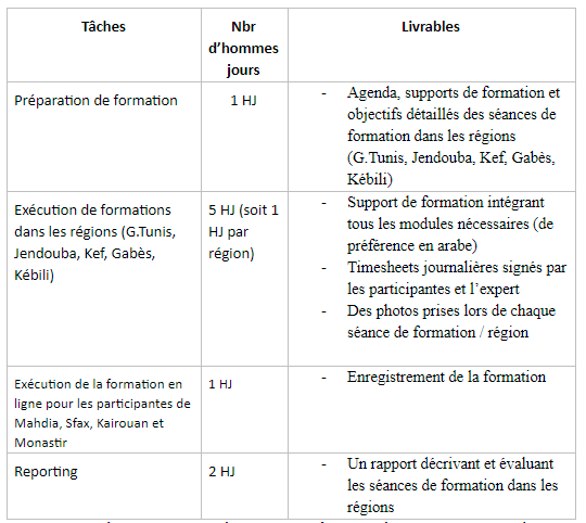 Régions : G.Tunis, Jendouba, Kef, Gabes, Kébili