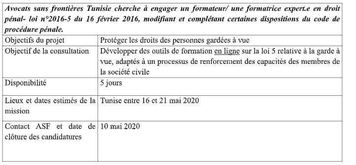 En raison de la situation sanitaire en Tunisie concernant le Covid-19, et suite aux instructions du Gouvernement de confinement total, ASF Tunisie va assurer ces formations en techniques de sensibilisation sur la loi 5 à distance et à travers une série de Webinars