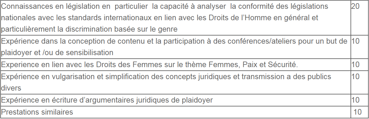 Le nombre maximal de points qu’un/une consultant/e peut obtenir pour sa proposition est le suivant :