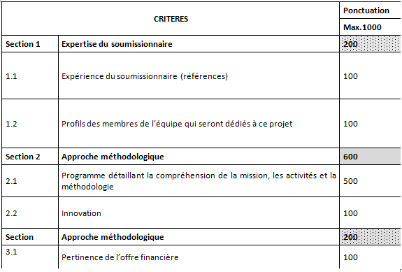 Note importante : Seront éliminées à l’issue de cette phase toutes les offres ayant obtenu une note technique inférieure à la note technique minimale de 700 points qui représente 70% des points totaux de la proposition technique (notée sur 1000 points).