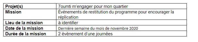 Une boite de communication et/ou un organisateur d’événement – « 7oumti, m’engager pour mon quartier » Retour vers les opportunités