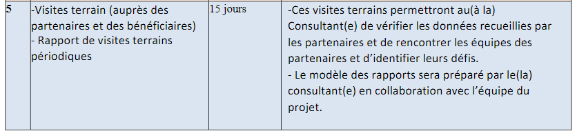❖Le(la) consultante s’engage àsoumettre les délivrables aux dates qui seront déterminées avec l’équipe du projet. Toute dérogation au délais indiquées devrait être agréée par écrit.