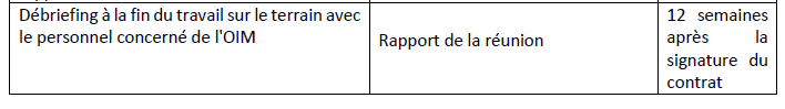 Il est envisagé que la collecte de données qualitatives comprendra des entretiens avec des informateurs clés avec les principales parties prenantes (autorités nationales et locales, OSC, agences des Nations Unies, experts thématiques, etc.). Les données seront utilisées pour complémenter les résultats quantitatifs et fournir une pertinence contextuelle supplémentaire. Les tailles d’échantillon et l’approche d’échantillonnage proposées doivent être incluses dans la proposition technique.
