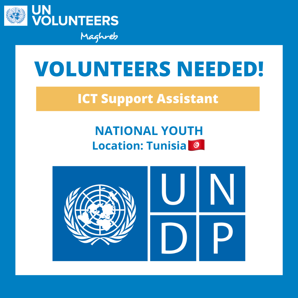 The UNDP Tunisia Country Office is designed for highly qualified and motivated young professionals. The programme provides an opportunity to start a development career through « on the job’ professional development that can be based on learning from UNDP’s programmes, policies, and operations. Training and learning will be part of the day-to-day activities under the UNDP CO. This UNV assignment is part of UNDP initiative leader of the operations service Information and Communication Technologies in the UN House, the ICT Support Assistant provides the first level ICT support services for the UN agencies and assist the ICT Associate of UNDP Tunisia to achieve the goals of the Information and Communication Technologies.