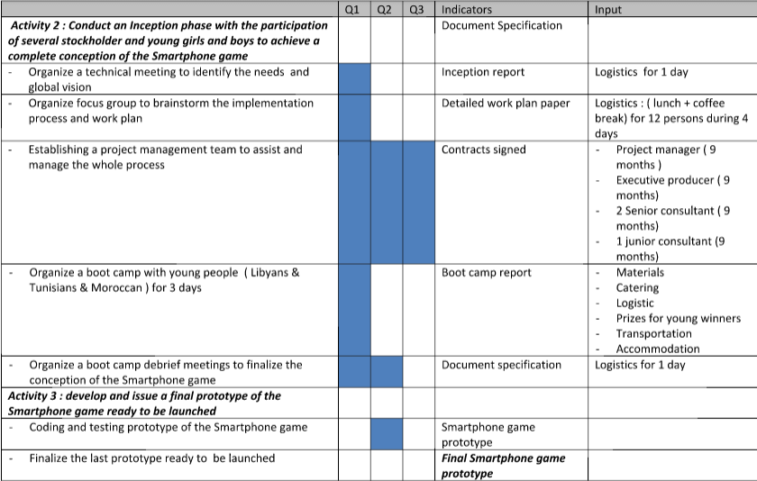 The development of the game will be done through a concept development phase which involves life skill experts and computer game developers working together to develop the concept of the game, and its different components, and a game development phase where the game development experts will work on developing the game. The last phase is a promotion phase, where the game will start be played in Libya and the peer educators will be prepared to engage in the physical interaction part of the game. Meanwhile, the youth programme team in UNFPA Libya country office will be developing the monitoring system that allows to capture the level of learning and the impact of the game on the players.