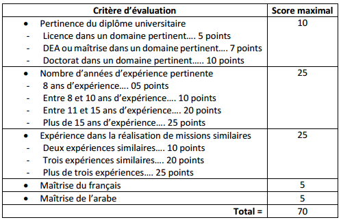 • Évaluation technique conformément à la grille d’évaluation ci-dessous. Chaque candidature sera notée sur un total de 80 points.
