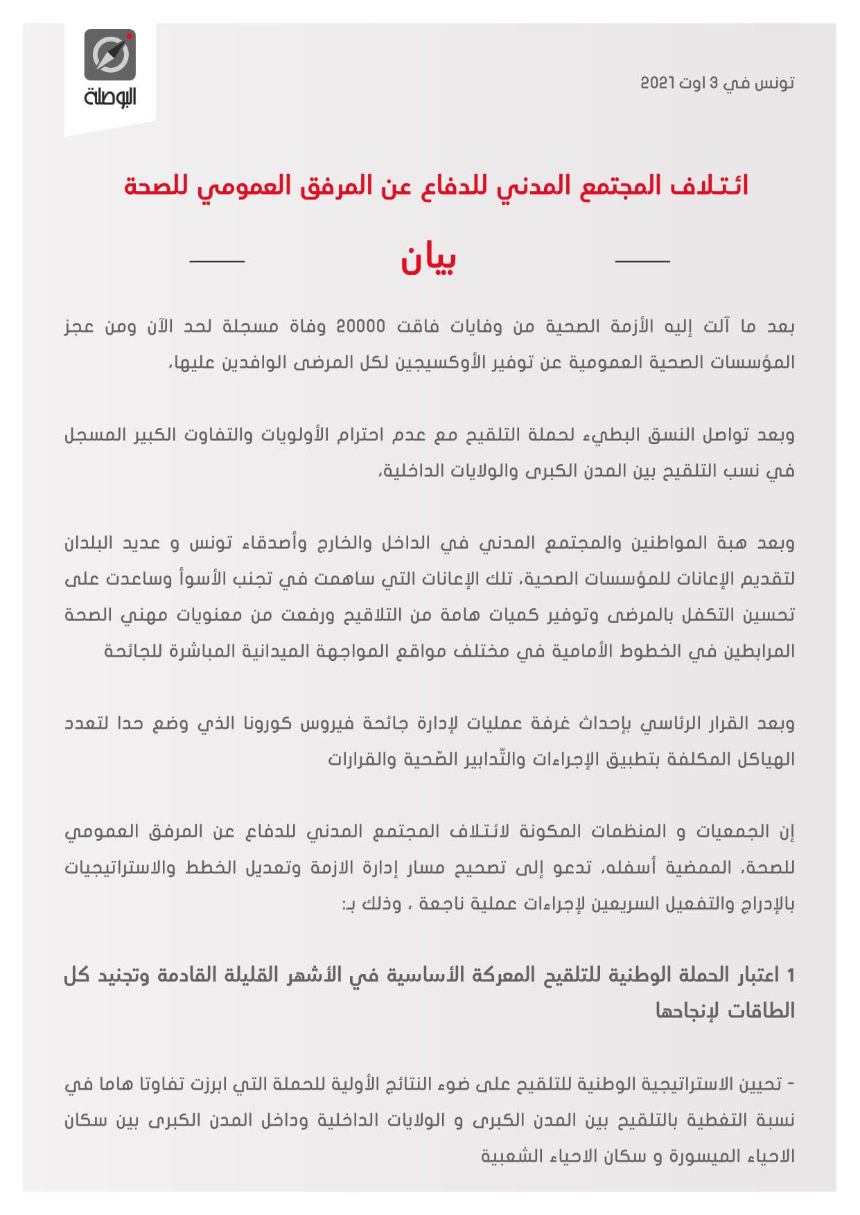 بيان ائتلاف المجتمع المدني للدفاع عن المرفق العمومي للصحة