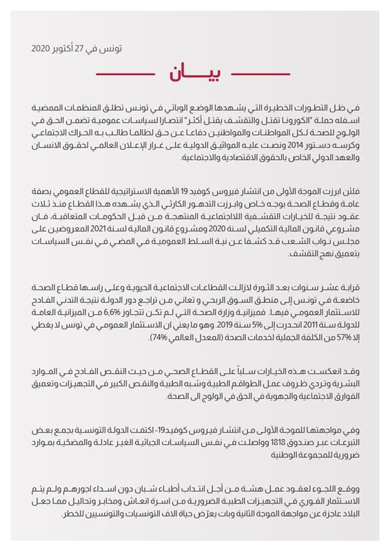 بيان : الكورونا تقتل والتقشف يقتل أكثر