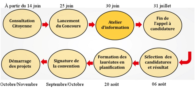 Un site web dédié à l’affichage de la délibération des résultats a été mis en place. RESO ne supervise pas le processus mais forme les associations pour la mise en place du plan d’action et la budgétisation de leurs initiatives. La durée d’exécution des projets est de 2 mois. La municipalité assure le suivi et le contrôle au niveau de l’exécution des projets. Des conventions entre les associations lauréates et les communes sont ensuite signées